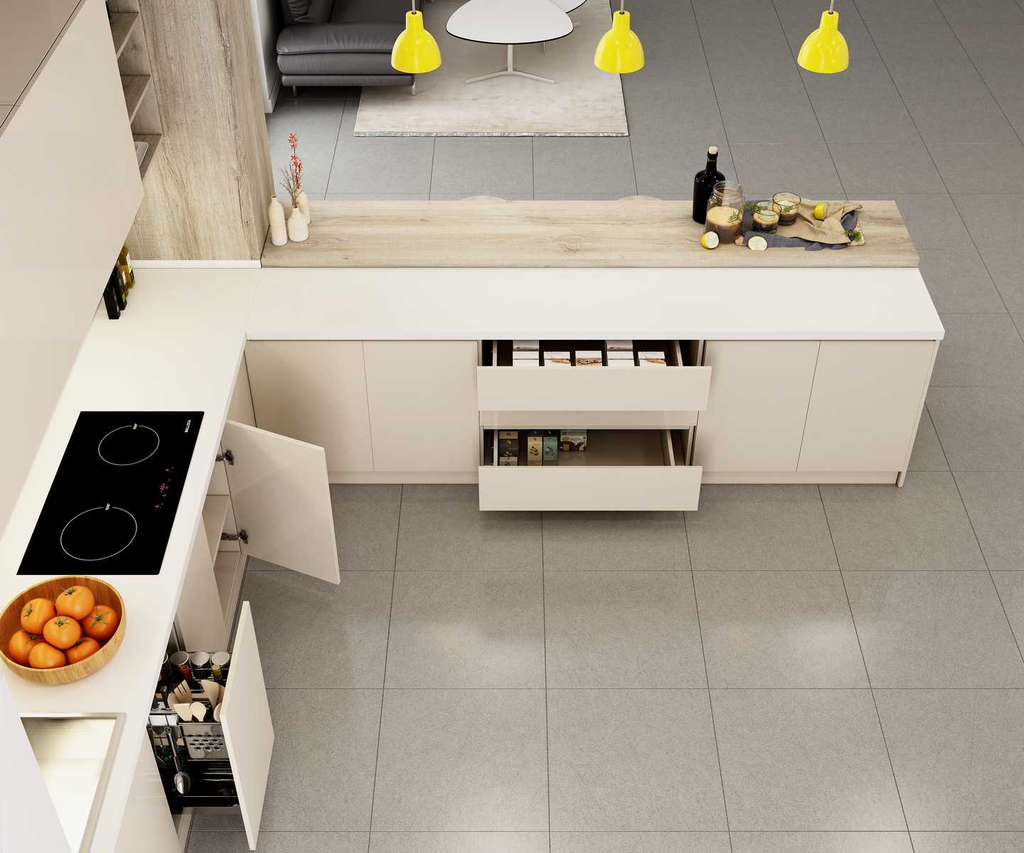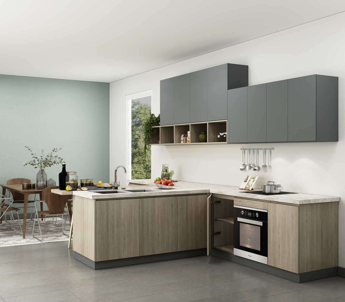 ✔ Quy cách chuẩn: Tủ trên 700mm – Tủ dưới 820mm